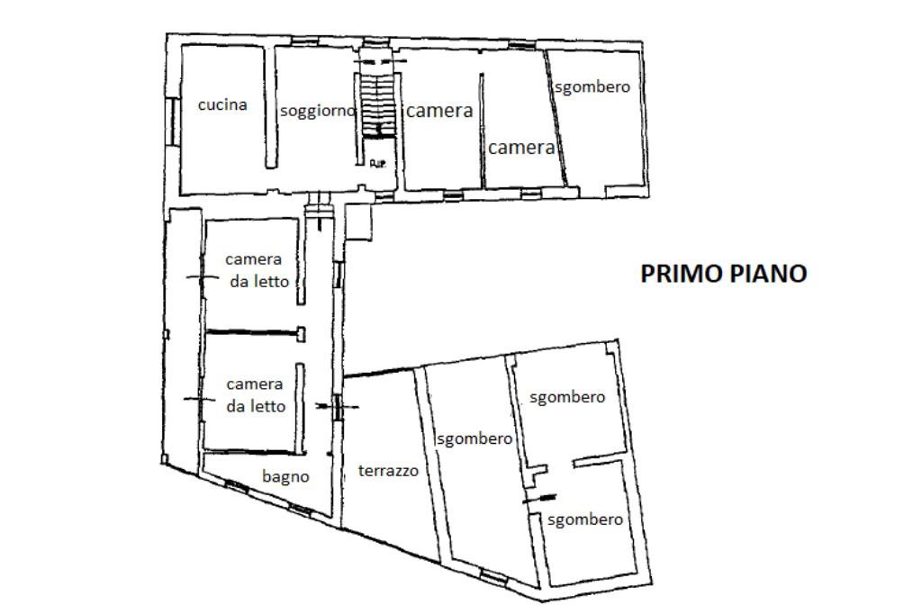 Al primo piano si trova l’alloggio principale, composto da cucina, sala, due camere da letto e bagno, con ambienti luminosi e ben distribuiti. Sullo stesso livello sono presenti anche due ulteriori stanze attualmente da ristrutturare, ideali per ampliare la zona abitativa, ricavare uno studio, camere aggiuntive o spazi da personalizzare secondo le proprie esigenze. Il riscaldamento dell’alloggio è a termosifoni; la caldaia a metano è da sostituire, offrendo l’opportunità di installare un impianto nuovo e più efficiente.
