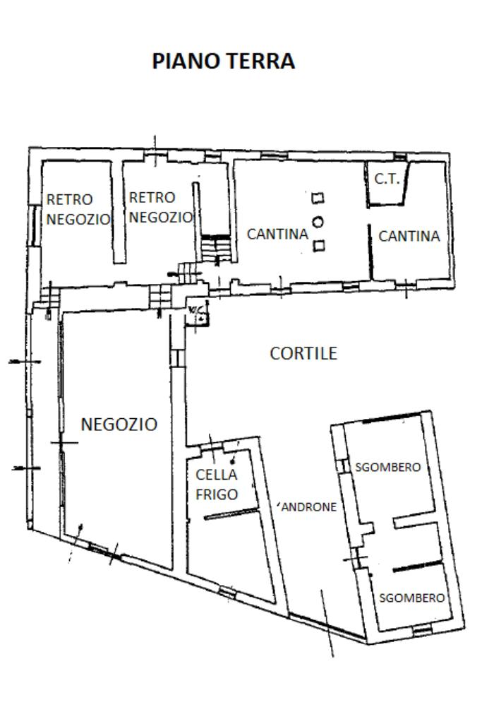 La proprietà si sviluppa su più livelli ed è composta, al piano terra, da un ampio locale commerciale fronte strada, affiancato da due locali retro-negozio, oltre a spazi adibiti a deposito e magazzino. Completano il piano terra ulteriori locali esterni situati nel cortile interno, comodamente accessibile direttamente dalla strada, una caratteristica che rende l’immobile particolarmente funzionale sia per un’attività commerciale sia per usi logistici o artigianali.