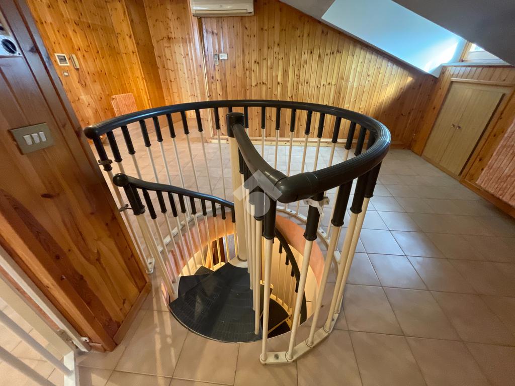 Attraverso una scala a chiocciola interna si accede al piano sottotetto, utilizzabile come deposito, magazzino o spazio aggiuntivo. Il locale dispone anche di un ingresso indipendente dal pianerottolo, offrendo così maggiore flessibilità d’uso.