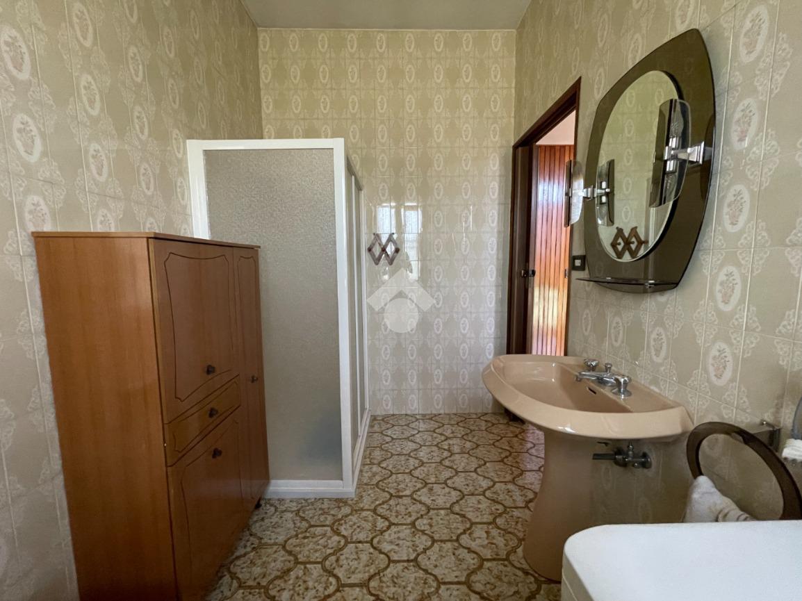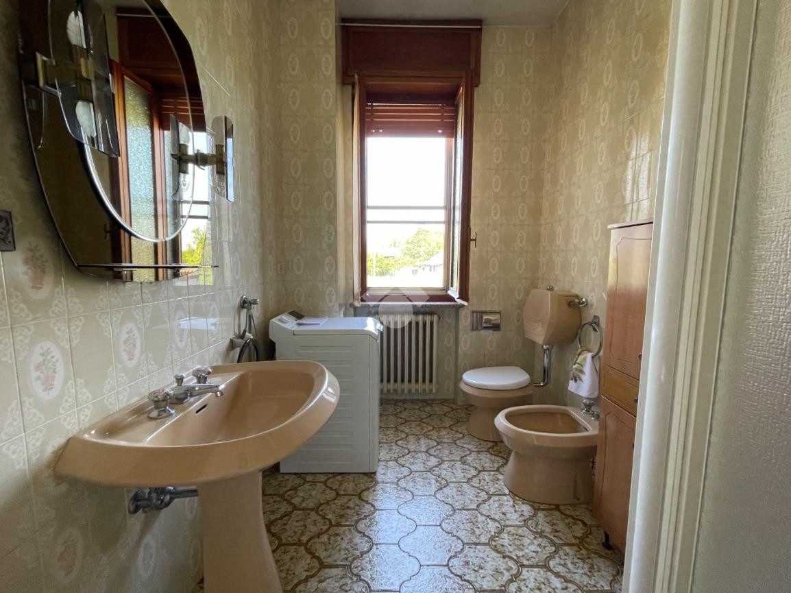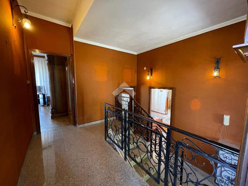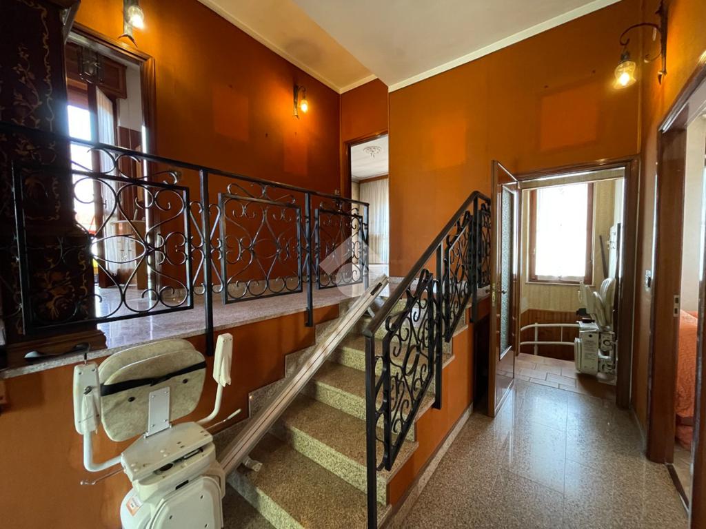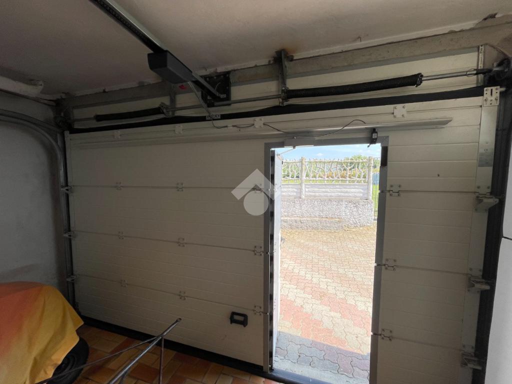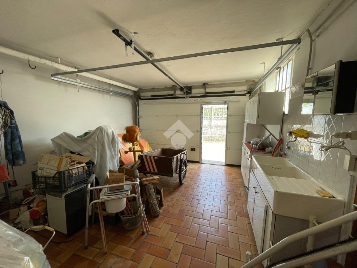 Tramite scala interna si raggiungono al piano seminterrato i locali di servizio come l'ampio box auto con basculante sezionale automatizzata di recente installazione, il locale tecnico con caldaia a condensazione e la cantina riscaldata e finestrata.