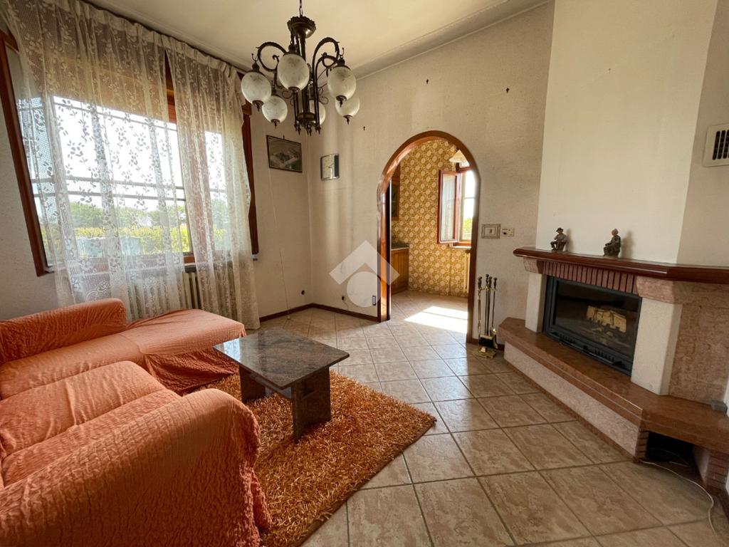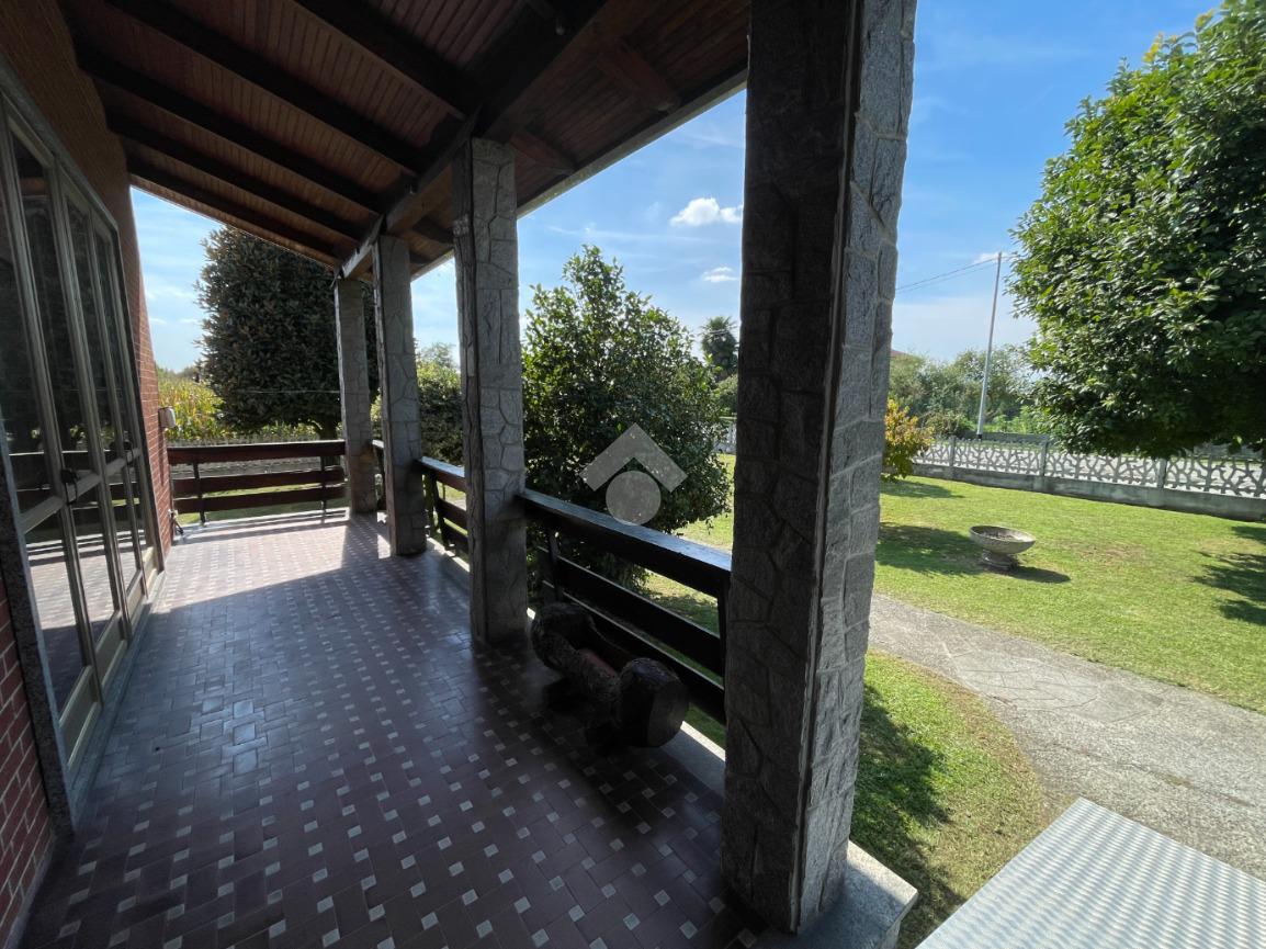 Tramite il portico coperto, che permette pranzi e cene all'aperto nella bella stagione, si accede all'interno con ampio ingresso che divide la zona notte dalla zona giorno, composta da soggiorno doppio molto luminoso grazie alle ampie vetrate e con accesso al portico coperto, cucinino con tinello reso accogliente dal camino a legna e climatizzato.