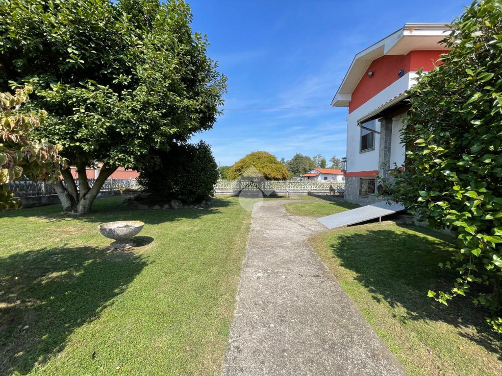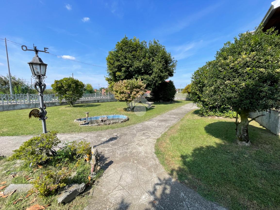 L'accesso alla villa è diviso in due: quello pedonale fronte strada, più arretrato rispetto alla carreggiata per una maggiore sicurezza e con possibilità di comodo parcheggio e l'ingresso carraio laterale che crea la possibilità anche di dividere tramite recinzione gli stessi per una maggiore sicurezza.