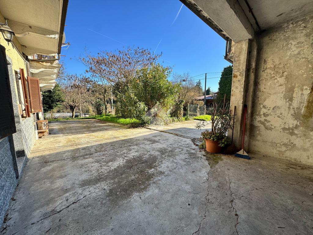 All’esterno, la proprietà dispone di un cortile situato nel corpo antistante della casa, composto da una parte cementata – ideale come area di manovra o spazio conviviale – e da una parte di giardino verde.